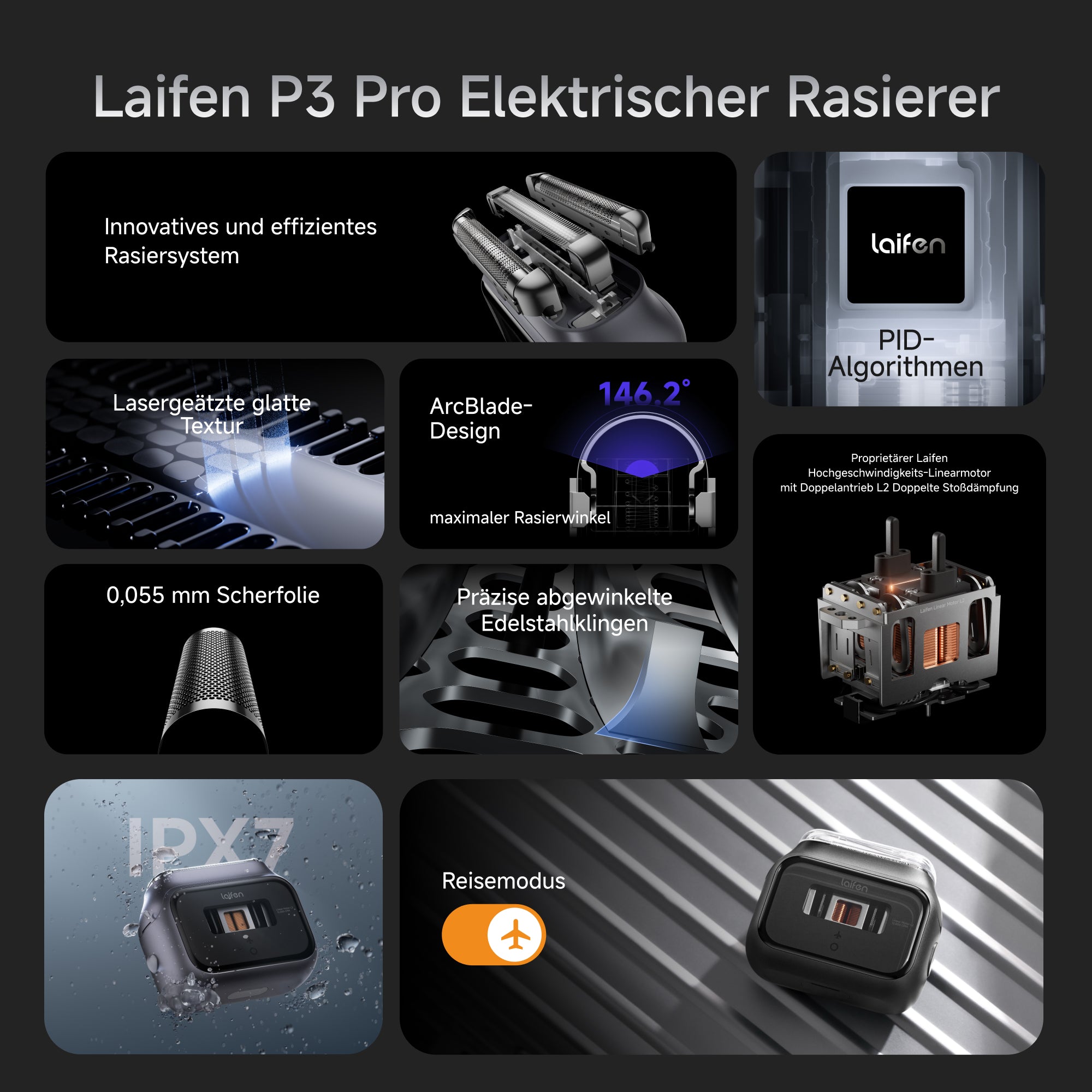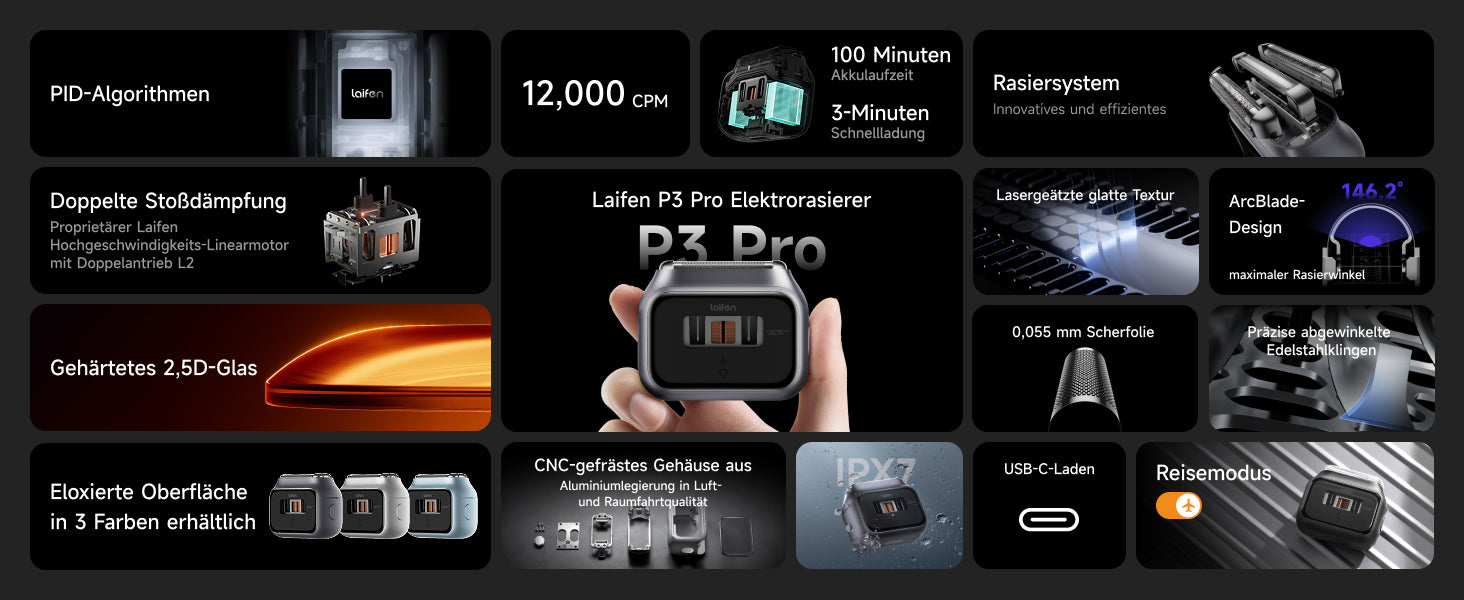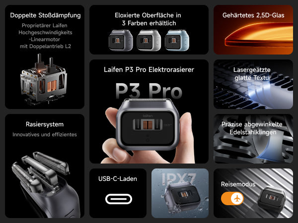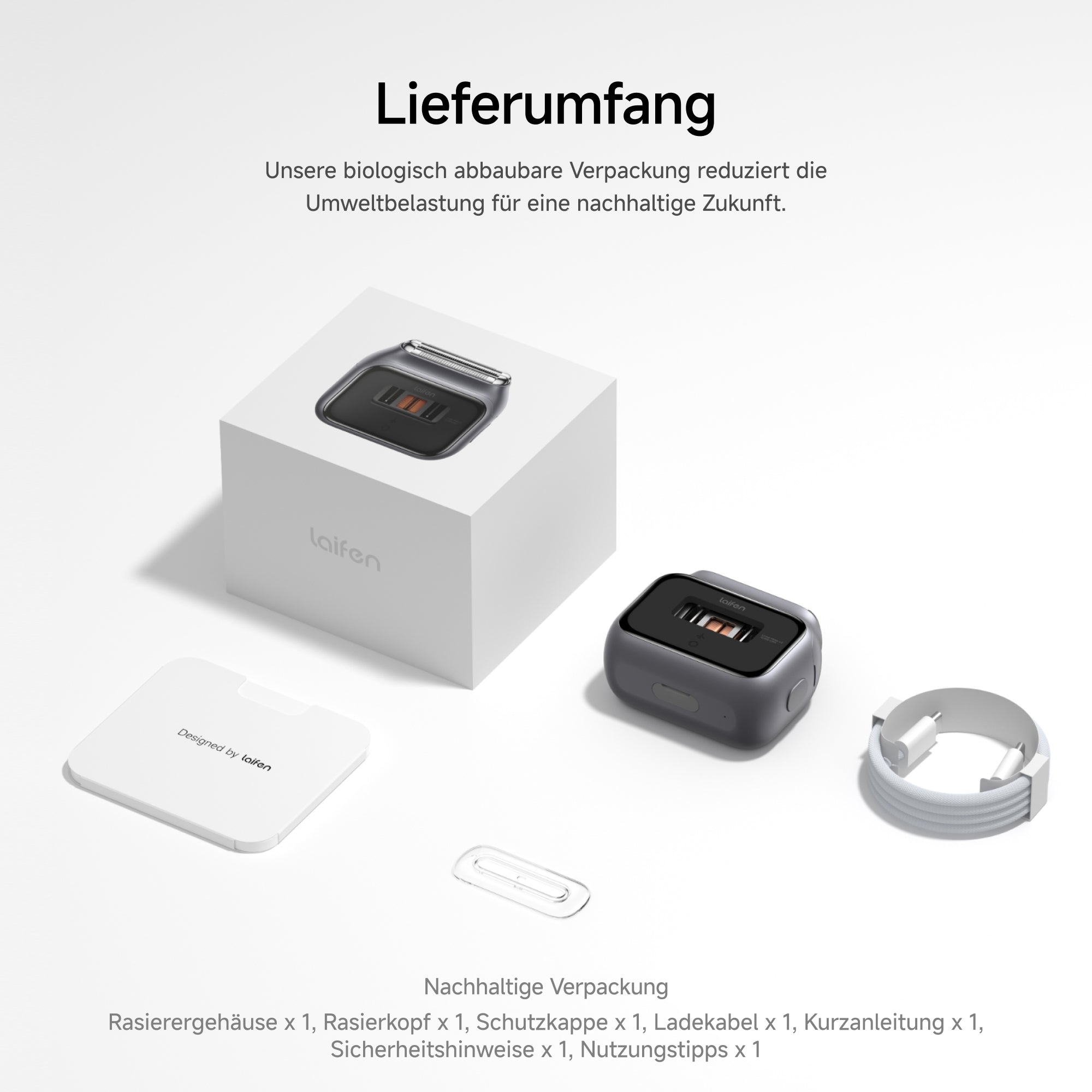 Der weltweit erste CNC-gefertigte Aluminiumrasierer in Luft- und Raumfahrtqualität, mit Sandstrahlen in Apple-Qualität für eine langlebige, glatte, matte Oberfläche. Sein quaderförmiges Design im Taschenformat umfasst ein von Supersportwagen inspiriertes „Motorfenster“, das Laifens legendären Motor zum ersten Mal in Aktion zeigt.