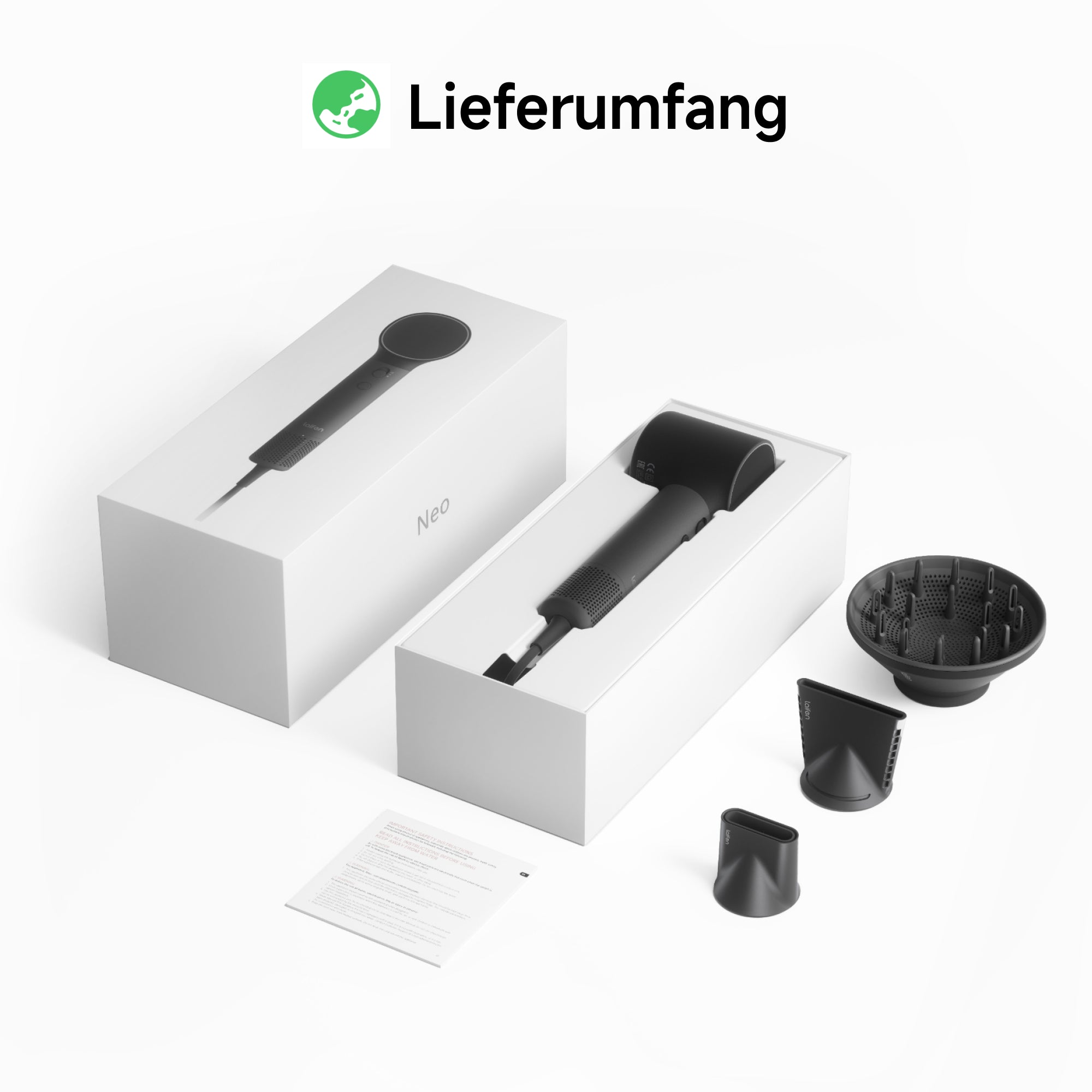 Du solltest nicht leise sein müssen, um auffällige Haare zu bekommen: Der Neo trocknet mit einer niedrigen Frequenz von 59 dB, sodass der Alltag ungestört bleibt – sogar Haustiere können entspannt dabei sein.