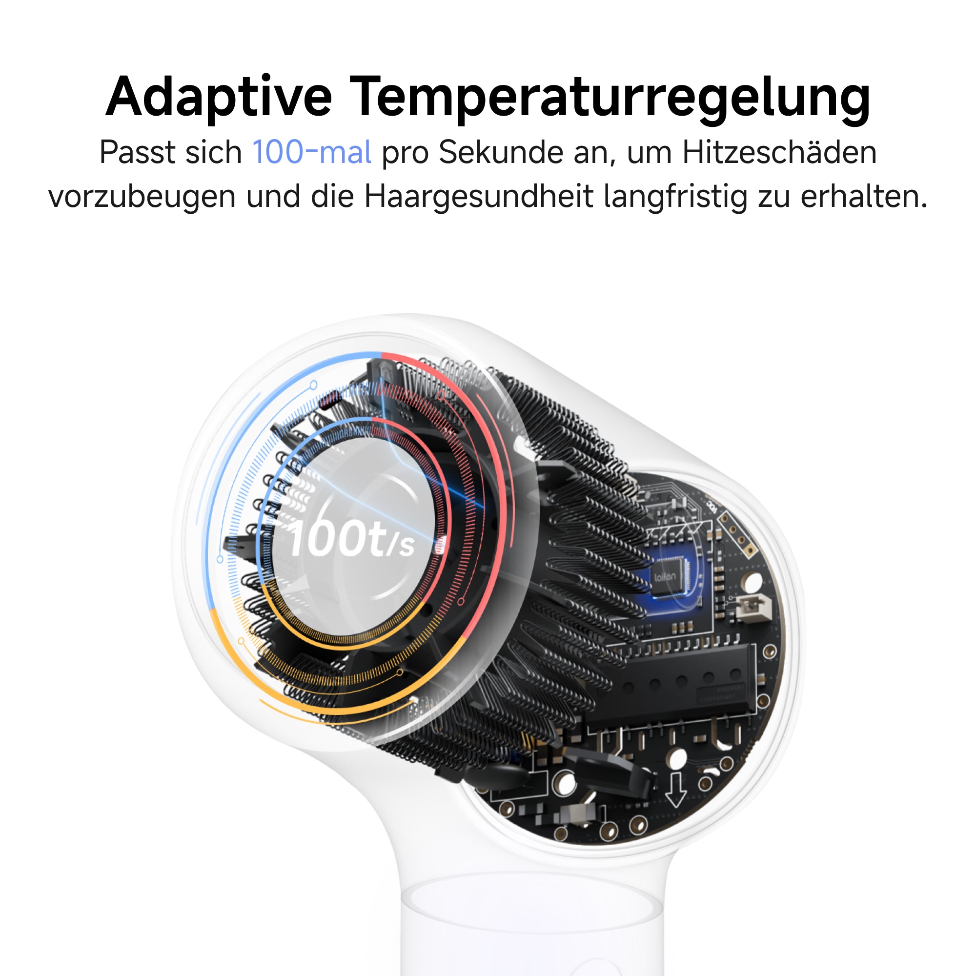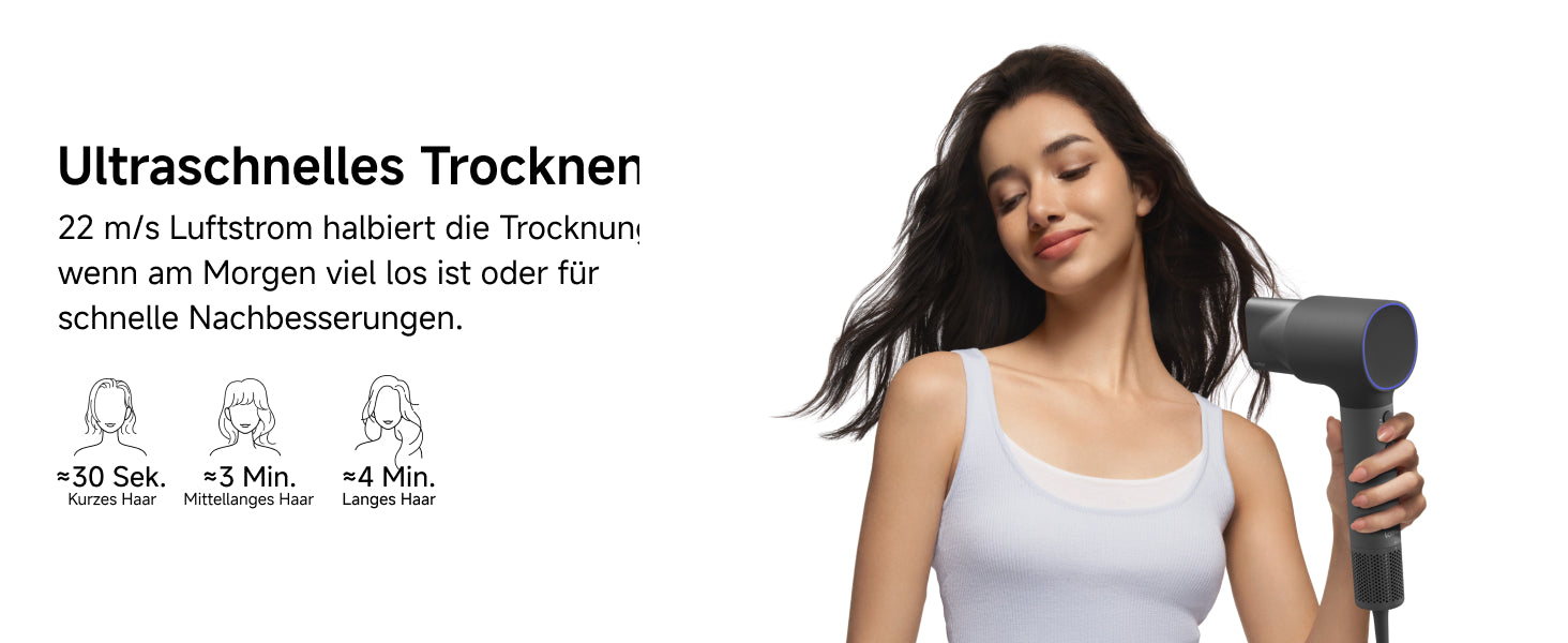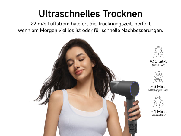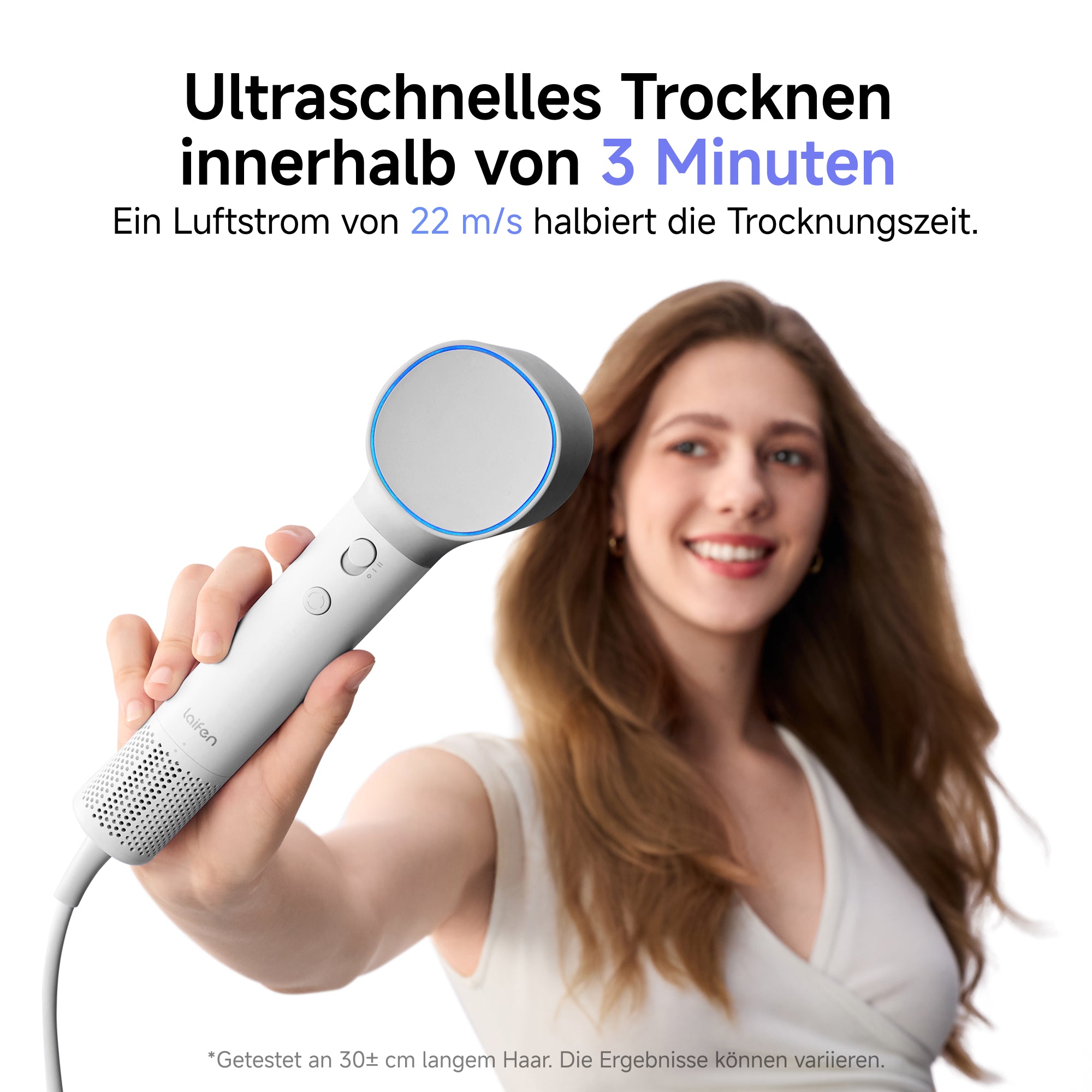 Die Kernmotortechnologie von Laifen erzeugt eine unglaubliche Luftgeschwindigkeit von 22 m/s und trocknet das Haar damit bis zu dreimal schneller als herkömmliche Haartrockner. Der innovative Motor läuft nicht nur ruhiger, sondern ist auch langlebig und auf eine Lebensdauer von bis zu 16 Jahren ausgelegt.