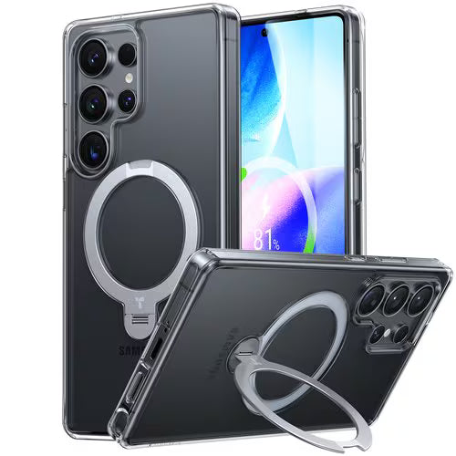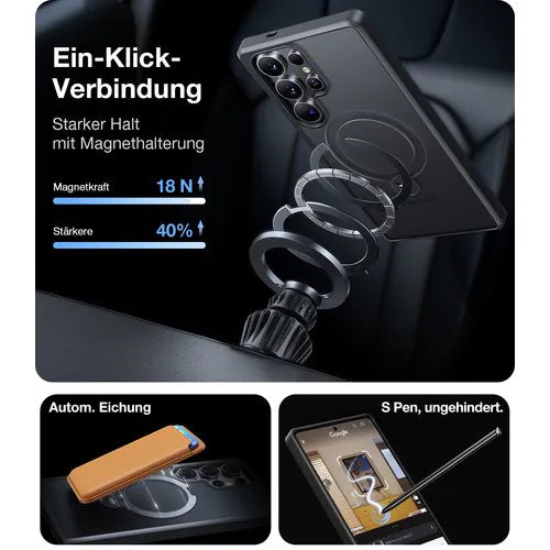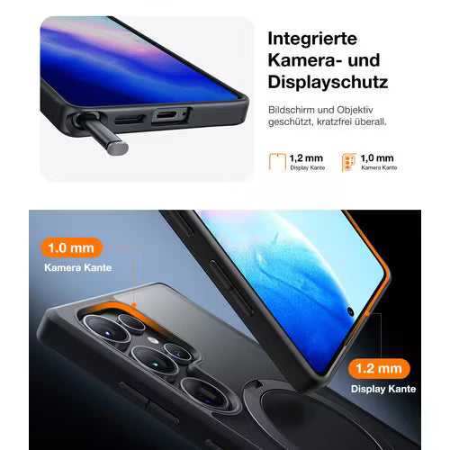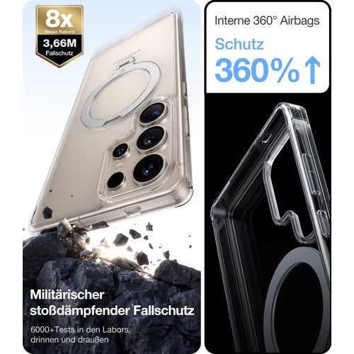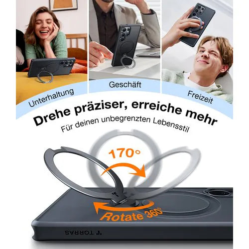 TORRAS 360° Ostand Spin für Samsung S25 Ultra Hülle (Magnetischer Robust Standring) TOP Militärschutz Stoßfest Kratzfeste Matt Durchscheinende Rückseite Handyhülle Samsung S25 Ultra Case Schwarz